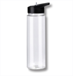 24 oz. Clear Hard Plastic Water Bottle with Straw.  Custom printed with your full-color logo. Black lid.  Wide mouth & portable for travel, gym, hiking, sports, work and more.